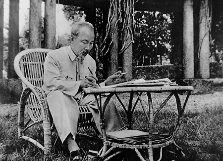 Hanoi, 1960: Ho Chi Minh writes commendation letters in his garden at the elegant Presidential Palace, formerly the French governor's mansion. Ho chose instead to live in a small nearby guest house, in line with his ideals of a simple life. Together with General Vo Nguyen Giap, Ho is given credit for shedding Vietnam of its former colonial master.